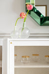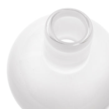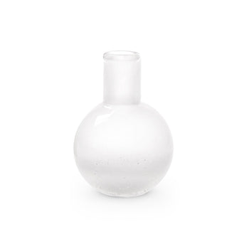 Villa & House's masterful artisans can be counted on for their innovative techniques and imaginative style, here culminating in the Giorgio Small Vase. Handmade glass has been mouth-blown to form the rounded shape and elongated neck. The show-stopping magic is in the details of its decorative display. Rising from its base is an effervescent constellation of bubbles or droplets in the glass, as if the essence of a spring rain has been captured in a bottle. A gorgeous and multifaceted fixture for a fresh stem. Stage it solo or pair with its larger counterpart. 4W x 4D x 6H
