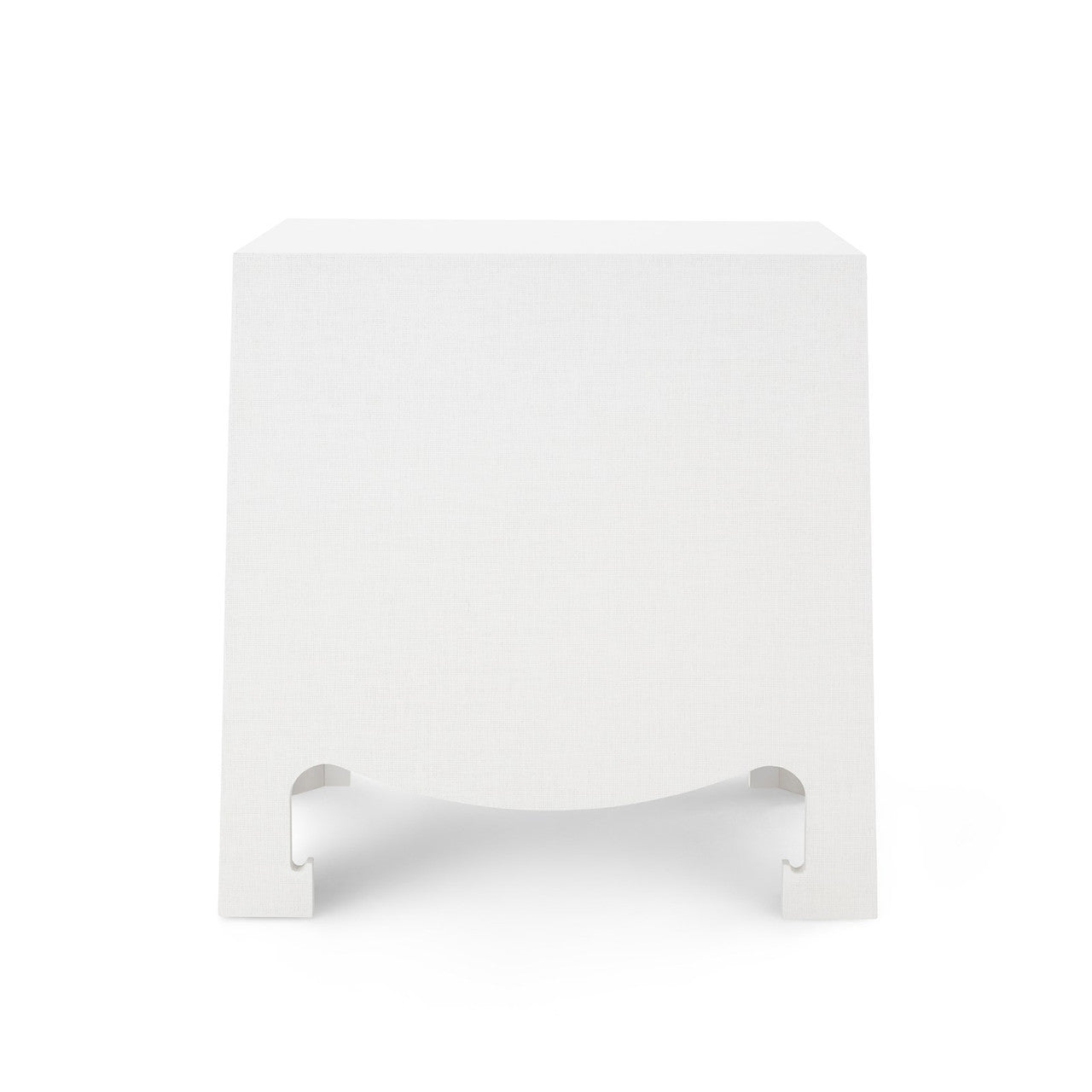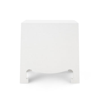 Fun, fresh, and a little bit funky, Villa & House's charismatic Jacqui Collection upgrades a room with glamorous flourish. A modern embodiment of opulent Hollywood Regency design, our Jacqui 3-Drawer Side Table features decorative wood-cut detailing, Chow-style curved feet, and subtly graduated drawers topped with glittering gold ring pulls. Realized in grasscloth with a white lacquer coat, the expertly-crafted piece is sure to play a starring role in any atmosphere, from traditional decor schemes to the more eclectic. Whether flanking a sofa or California King bed, the Jacqui's presence instantly whisks you away to a scene straight out of classic Hollywood. 28W x 18D x 28H