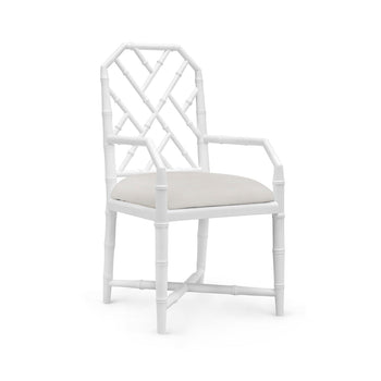 The Jardin Collection revisits one of Villa & House's beloved design motifs, inspired by classic Chinoiseries. A rich lacquered finish adds to the sophistication of the design, which sees solid mahogany artisanally hand-carved to resemble bamboo. Decorative lattice fretwork, diagonal stretchers, and gently tapered legs add visual and structural interest while maintaining an air of elegant simplicity. Completed with a linen drop in cushion, the Jardin Side Chair feels at once relaxed and undeniably upscale. Either at a desk or dining table, this chair invites you to sit back in style. 21.25W x 23.25D x 37.25H