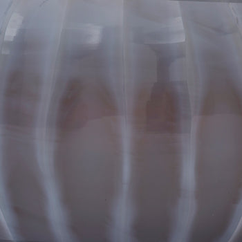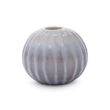 With a shimmering opalescence akin to that of a precious pearl, the Lida Vase is a splendid gem for your tabletop or console. Its rounded spherical shape is achieved through a process of hand-blowing fired glass, a traditional technique Villa & House's artisans have kept alive. Its form is encircled by a gourd-like pattern of hand-cut vertical lines, a striking detail which helps add dimension and elongate its shape. The outer glass layer is finished off and perfected with a glossy glaze, underscoring its iridescent look and cool tones of smokey gray. Whether filled with stems or displayed on its own, the Lida is a unique accent with handmade appeal. 6W x 6D x 5H