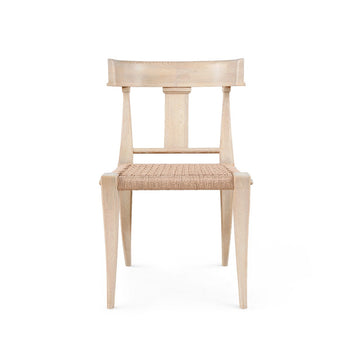 Meet the Milos Side Chair—a sophisticated statement inspired by the iconic Robsjohn Gibbings. Crafted from solid oak in the timeless Greek Klismos style, its classic form exudes character. Elegant curves and coved details grace the back and legs, while the handwoven basketweave-patterned seat adds a touch of artisanal charm. Elevate your space with this tasteful blend of tradition and craftsmanship. 21.25W x 24D x 34.25H