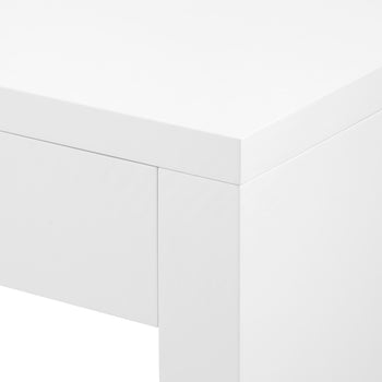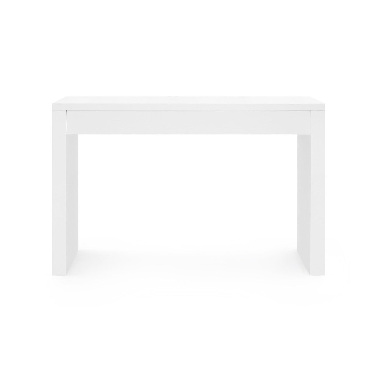 The Morgan Console is the ideal finishing touch in an entryway, corridor, or sitting room. Its structured and streamlined silhouette is imbued with a sense of lightness, while its proportions give it a bold impression fit for modernist tastes. A sleek, inset drawer provides subtle hideaway storage, opening on soft-closing glides to reveal rich stained interiors. The Morgan certainly embraces minimalism with its shape and smooth white finish, making it a modern and uniquely versatile piece fit for almost any decor scheme. Pair it with a low bench and dress it up with a vase, pair of lamps, or any of your favorite decorative accents. 45W x 12D x 30H