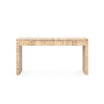 The Morgan Large Console is the ideal finishing touch in an entryway, corridor, or sitting room. Its structured and streamlined silhouette is imbued with a sense of lightness, while elongated proportions give it a bold impression fit for modernist tastes. A sleek, inset drawer provides subtle hideaway storage, opening on soft-closing glides to reveal rich stained interiors. The Morgan certainly embraces minimalism with its shape but finds distinction in its luxuriously textured finish. Villa & House’s designers have seamlessly applied Clear Lacquer over natural woven Papyrus, resulting in a fresh, organic, and endlessly chic furnishing. Pair it with a low bench and dress it up with a vase, pair of lamps, or any of your favorite decorative accents. 60.75W x 12D x 30.5H