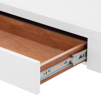 The Morgan Large Console is the ideal finishing touch in an entryway, corridor, or sitting room. Its structured and streamlined silhouette is imbued with a sense of lightness, while lengthened proportions give it a bold impression fit for modernist tastes. A sleek, inset drawer provides subtle hideaway storage, opening on soft-closing glides to reveal rich stained interiors. The Morgan certainly embraces minimalism with its shape and smooth white finish, making it a modern and uniquely versatile piece fit for almost any decor scheme. Pair it with a low bench and dress it up with a vase, pair of lamps, or any of your favorite decorative accents. 60.75W x 12D x 30.5H