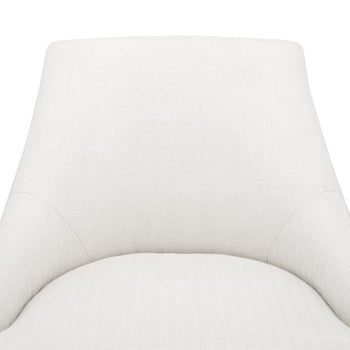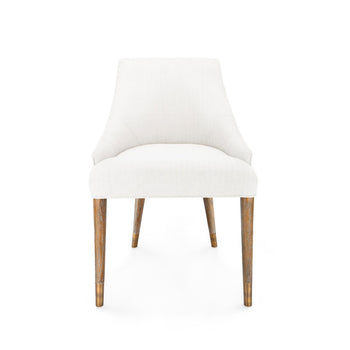 Villa & House's designs are celebrated for their sophisticated silhouettes and luxurious materials. Let's just say the Orion Armchair serves as the perfect example. Combining elements of the soft and solid, the plush seat is covered in natural linen in a subtle herringbone pattern and backed by a structured framework of beautifully grained driftwood. The gentle curves and cloudlike cushioning are met with the sleekness of its four wooden legs, delicately tapered and capped in bronze. The angled positioning of the two back legs recall mid-century modern design, giving the piece a retro aesthetic that's timelessly chic. The Orion makes for a beautiful accent chair in a sitting room or study, or it can be used as a dining set that elevates each meal with a sense of high-end comfort. 22W x 20.5D x 31.75H