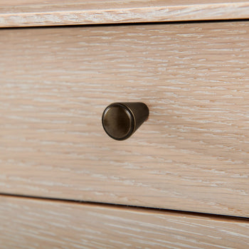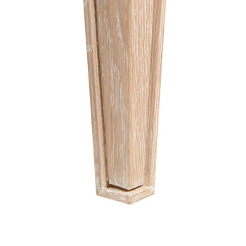The Paola Desk features five drawers with oak veneer interiors, soft closing glides, and bronze pulls. You'll love the attention to details such as the thin hand-carved line that traces the edges of the piece, and then gradually tapering legs that make the top appear to be floating in the air. As a light-colored desk, there is a hint of something almost Scandinavian, but the overall impression is chic and French. The stylish Paola Collection feels dressy while simultaneously being open and airy. 60.25W x 26.25D x 30.25H