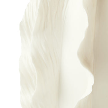 The romantic nature of the Spring Flower Vases invites you to display beautiful floral arrangements on any surface of your home. Delicate rippling petals, which resemble the natural folds of a Damask Rose, surround the outer surface of each vase to add intricate movement to its form. The Matte Glazed Blanc de Chine finish adds a soft touch of elegance. Offered in two sizes, they can be used individually or paired together for a graceful decorative display. 9W x 13D x 11H