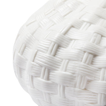 The Tamarindo vases are cast from Blanc de Chine Porcelain and resemble soft-form bags made of reed. Their surface is covered in a delicate woven pattern which has been picked out by hand in order to bring it into sharper detail. The Tamarindo comes in both small and medium sizes. The vases can be paired together or presented individually. Use the Tamarindo as a stylish centerpiece on your dining table, or pair two for an elegant display. 11W x 13D x 9H