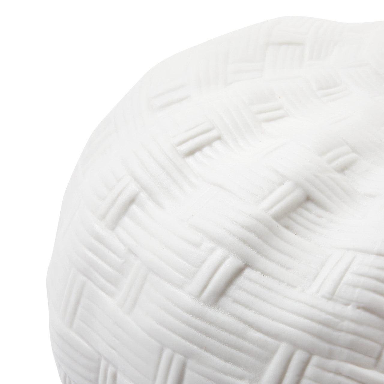 The Tamarindo vases are cast from Blanc de Chine Porcelain and resemble soft-form bags made of reed. Their surface is covered in a delicate woven pattern which has been picked out by hand in order to bring it into sharper detail. The Tamarindo comes in both small and medium sizes. The vases can be paired together or presented individually. Use the Tamarindo as a stylish centerpiece on your dining table, or pair two for an elegant display. 9W x 11D x 7H