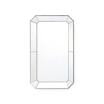 With the Tanta Mirror, our artisans prove that thoughtful details and high-quality construction can help a stylishly minimalist piece make maximum impact. The gem-like silhouette of this gleaming accent resembles an emerald-cut diamond, with an elongated eight-sided profile, beveled borders, and high-clarity mirrored shine. Light dances off the Tanta's mirrored frame, which features individually-cut and beveled baguettes of mirrored glass, installed at an angle to add striking visual appeal and extra dimension. Its elegant simplicity complements just about any decor scheme, giving your space the illusion of extra space and light while functioning as a useful looking glass. It looks beautiful hung vertically or horizontally above a living room sofa, dining room credenza, or large fireplace. 20W x 2.5D x 32.5H