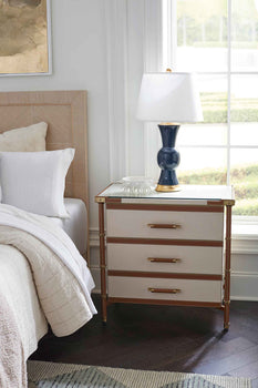 The Tao Lamp is a lighting accent that's made to be treasured. Its elegant profile is steeped in tradition, nodding to the shape of the ancient Chinese "Gu"vessels of the Shang and Zhou dynasties. Realized in beautiful Blanc de Chine porcelain, our version features an updated silhouette with a flared top and base that meet at a rotund center, a detail that softens its elongated shape with rounded curves. The navy-blue porcelain is topped with a glazed finish, which adds delicate shine to complement the antique gold leaf accents of its base and finial. Pair it with a slightly tapered drum shade to create a classic look in a sitting room, bedroom, or study. Please note: Villa & House's lamp shades are sold separately. 6W x 6D x 29H