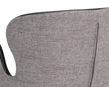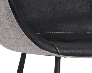This comfortable counter stool combines mid-century modern style with urban design elements. Stocked in november grey fabric with a cinnamon brown bonded leather exterior, and black powder-coated iron legs and footrest. Suitable for various dining, kitchen and bar spaces of all sizes. Handle with Care: This design has been crafted with bonded leather. Bonded leather is a blend of reconstituted leather and synthetic materials crafted to reflect the natural characteristics of leather; as such, colour variations, markings, wrinkles, grooves and light scratches are acceptable and appreciated characteristics. No two pieces are alike. Visit our Product Care page for more information on how to ensure the lasting beauty of this piece.