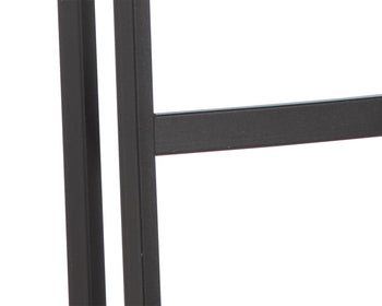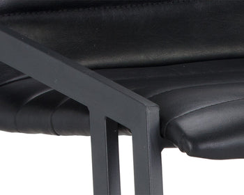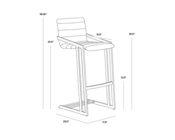An industrial chic barstool. Features horizontal channel tufting on the seatback with an exposed black steel frame. Stocked in cantina black bonded leather. Suitable for various dining, kitchen and bar spaces of all sizes. Handle with Care: This design has been crafted with bonded leather. Bonded leather is a blend of reconstituted leather and synthetic materials crafted to reflect the natural characteristics of leather; as such, colour variations, markings, wrinkles, grooves and light scratches are acceptable and appreciated characteristics. No two pieces are alike. Visit our Product Care page for more information on how to ensure the lasting beauty of this piece.