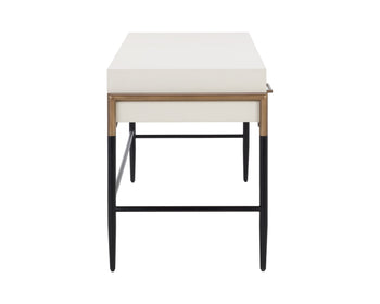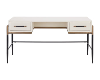 Make a statement with this stylish desk that exudes prestige. Features a oyster acacia wood veneer with two soft closing drawers. Completed with black and antique brass iron handles with coordinating base. As wood is an organic, porous material, these pieces will contain natural variation of texture and may also exhibit fine indentations and cracks. Wood pieces will also display a disparity of color and grain, and visible knots and burls that add to the character of each piece.