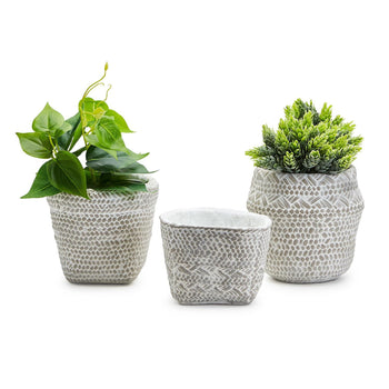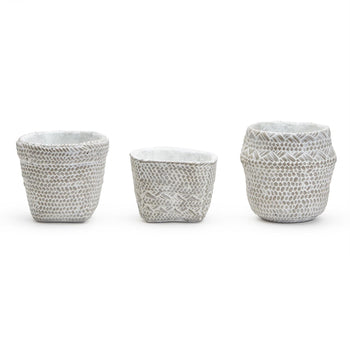 Two's Company White Washed Set of 3 Basket Pattern Planter