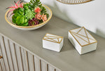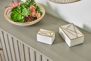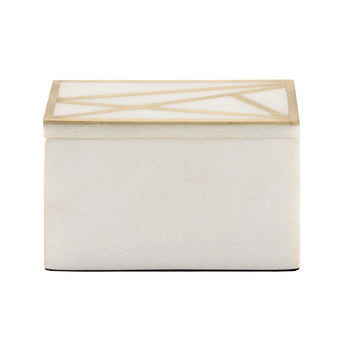 Known to clear the mind and activate your creative side, marble is also beautiful translucent stone perfect for complementing a variety of design styles. Crafted of alabaster, this decorative box top features brass to create an attention grabbing geometric pattern. Improve the look of your decor by displaying on table tops or bookshelves in your bedroom or living area. Also available in a large version (302286).