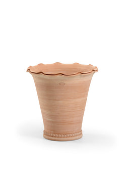 Add a historic element to your home or garden with this terra cotta planter from Impruneta, Italy. For centuries this small Tuscan town and its artisans have been famous for the quality of their terra cotta pots. This stunning pot has a fluted rim and a natural red finish that was patinated by the sun and rain. Whether in a sunroom, screened in porch or outside on a patio, Impruneta Fluted Pot is a simple way to add color and life.