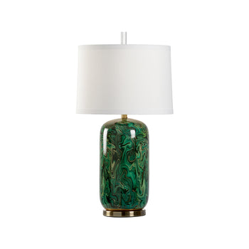 Faux emerald marble pattern on ceramic with antique brass finished accents and mounting.