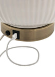 The graceful curves and almond glaze of this ceramic gourd lamp create a contemporary accent with simple elegance. Adding to the neutral design scheme is a crisp linen shade and an antique gold finished base and finial that reflect the light and emit a soft, radiant glow. Comes with USB port on base. Ideal for your home, office or anywhere needing a charging station.