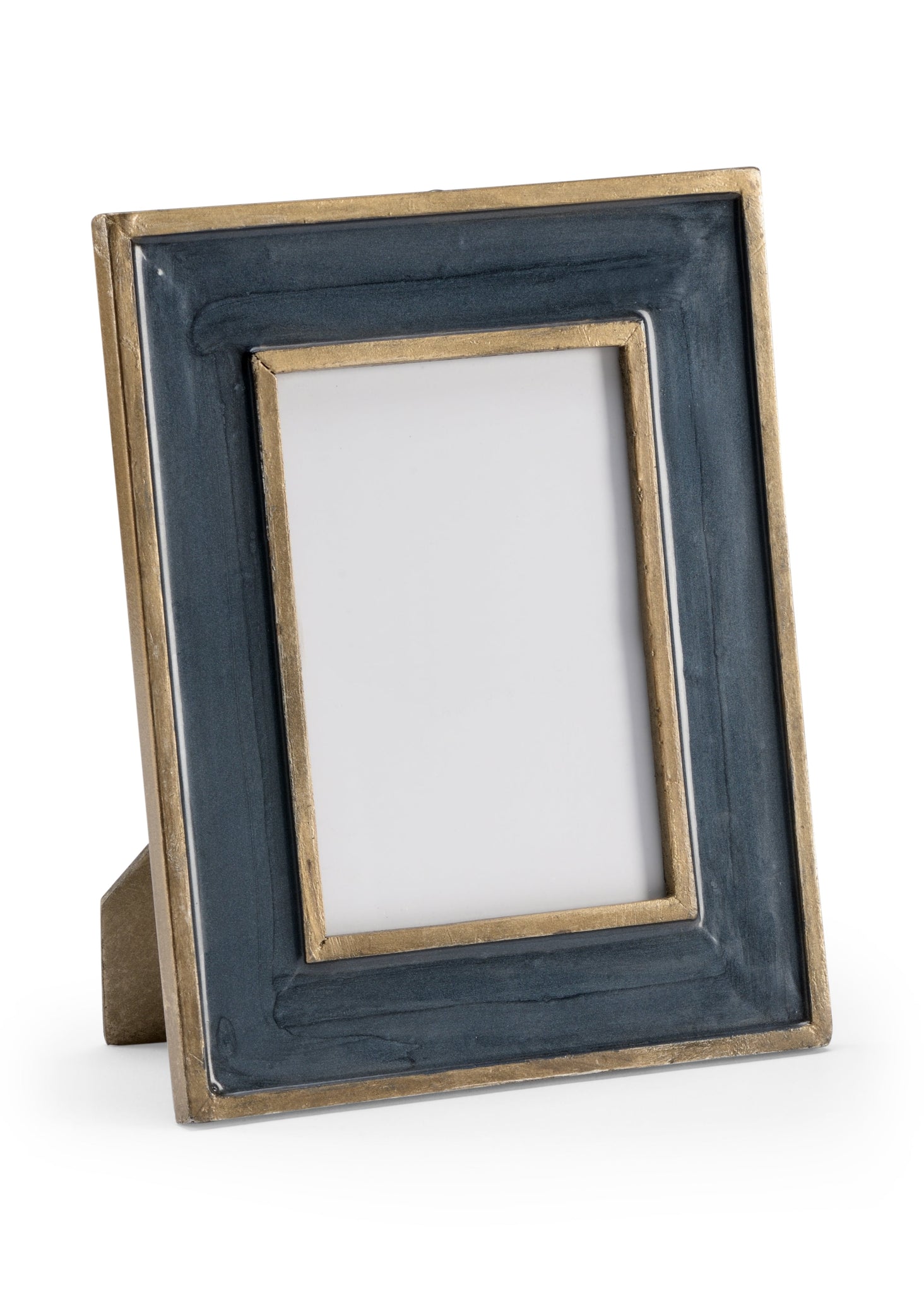 Display your favorite memory in our teal enamel frame with antique gold trim. The sleek enamel finish shines in a modern decor. Features include a protective glass covering and an easel for vertical or horizontal viewing. Add to any desk, table or bookcase in your home or office.