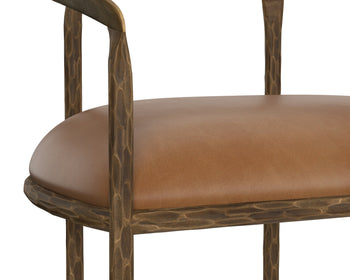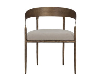 The Zanatta Dining Armchair is all about the subtle details. The hammered metal detailing in the antique brass curved frame provides visual interest that will stand out in any dining space. An upholstered seat in our zenith taupe grey performance fabric completes the look. Performance fabric is moisture repellent, durable and easy to clean. Made in India. With refined craftsmanship, this design was brought to life by skilled local artisans. Due to the nature of handcraftsmanship, unique imperfections such as fissures, markings and variations in colour and shape are welcomed and appreciated characteristics for a truly one-of-a-kind piece.