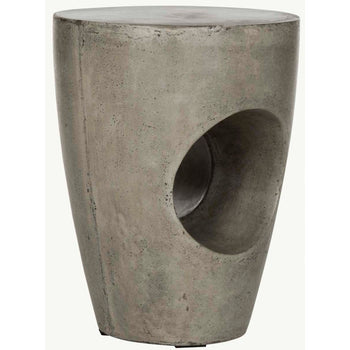 Inspired by the African influence present in the legendary work of modernist sculptors, this contemporary concrete accent table was designed for the collector. Its gentle curves and cut out detail create an artistic focal point in any well appointed room. Perfect for indoor and outdoor use.