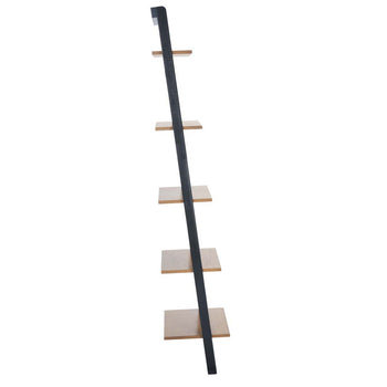The Allaire Leaning Etagere brings warm farmhouse charm to your Decor with its country ladder-styled frame. Flaunting five shelves of varying widths for a chic sense of movement, Allaire's natural and charcoal finishes are perfect for any room's color palette, displaying beloved heirlooms with ease.