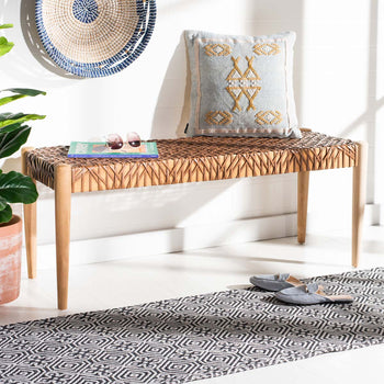 The interiors of the latest 5 star resort in the Swiss Alps inspired this contemporary bench. A modern classic, the clean lines of natural teak frame its sophisticated cowhide leather upholstery. Ideal as an extra surface or seat in any living room.