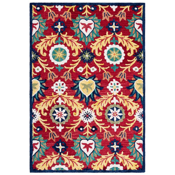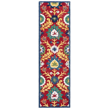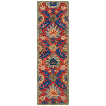 The color palette is a bold and elegant mix of RED and BLUE, promising to infuse warmth and vibrancy into your space. The intricate pattern, as seen in the provided image, displays a harmonious blend of floral motifs, showcasing varied blooms and botanical designs that capture the eye and captivate the imagination.