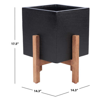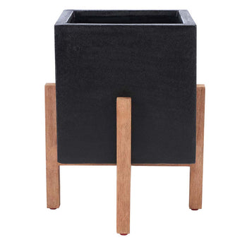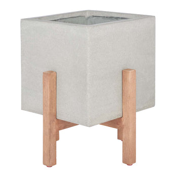 Bring sleek minimalism to the great outdoors with this Borsla Planter. Borsla's stark angles pair well with the organic shapes of flowers, giving any porch or patio a touch of modern chic. The light grey hue of its concrete cube highlights the natural finish on its acacia legs.