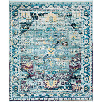 A visual delight, the rug features an intricate pattern that tells a story of heritage and sophistication. The delicate height of 1/8" offers a smooth texture underfoot, while the rich teal and purple hues breathe life and color into your home.