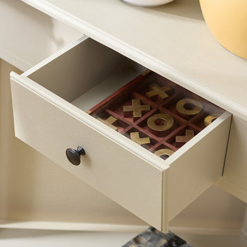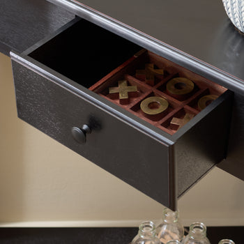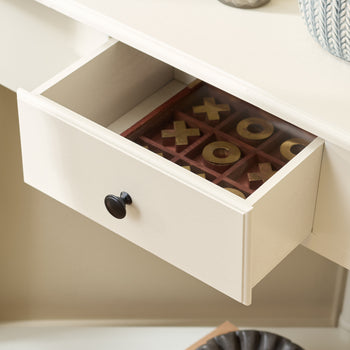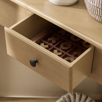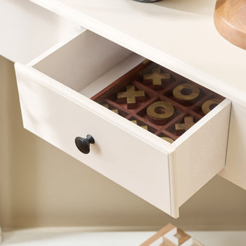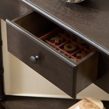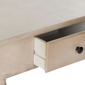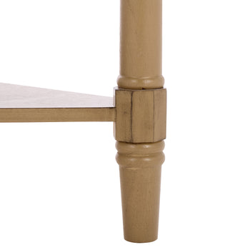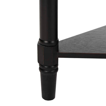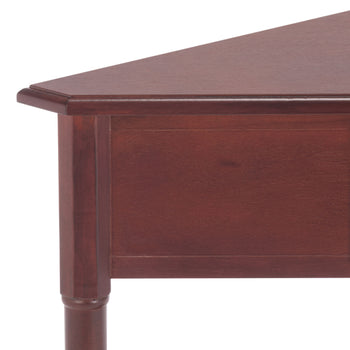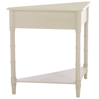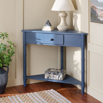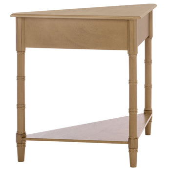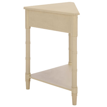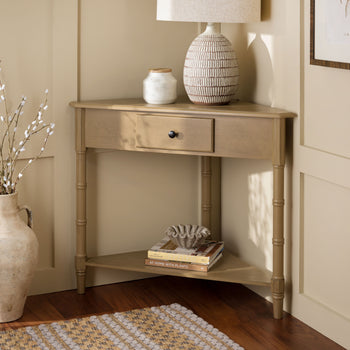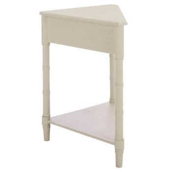 This Gomez Table was designed with small living spaces in mind. Gomez's triangular pine wood frame easily fits into any sized room, while its bamboo inspired legs in a distressed finish ensure Gomez perfectly integrates with existing decor. One drawer and bottom shelf provide both open and closed storage.