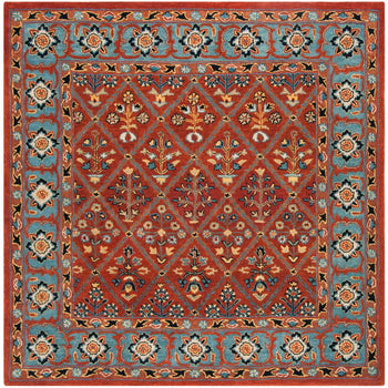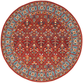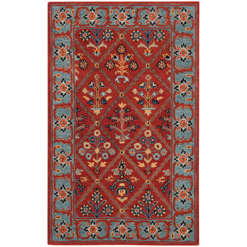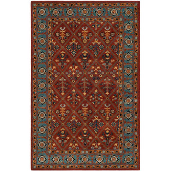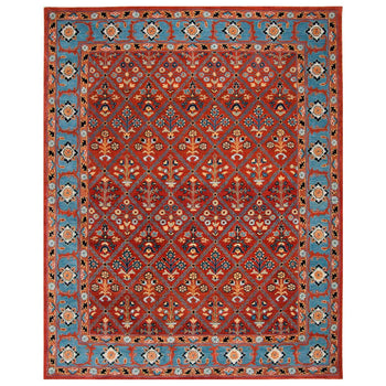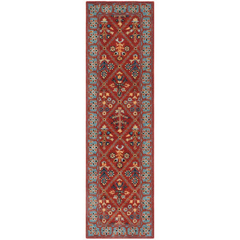 Elevate your home with the rich elegance of our hand-tufted wool runner rug. Crafted with precision and care in India, this luxurious runner measures 2'-3" X 8', making it a perfect accent for hallways, entryways, or any narrow space in need of a touch of warmth and style. The rug features a captivating traditional pattern that combines a warm red base with intricate blue accents, artfully framed by a harmonious border that ties the design together.