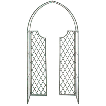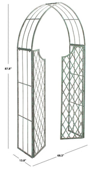 Announcing the entrance to a glorious garden, this rustic blue Jaida Arbor evokes images of Scottish castle grounds. Ready for the rich scents of sprawling vines or climbing roses, Jaida's classic iron lines add class and character to any yard even after the summer blossoms fade.