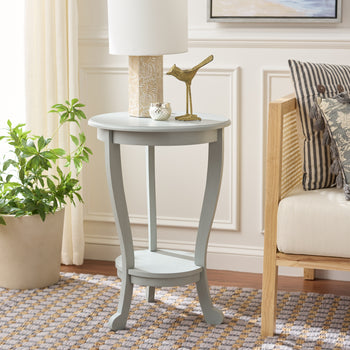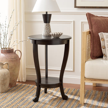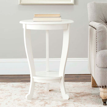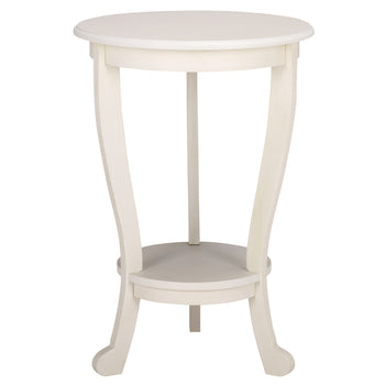 The Mary Pedestal Side Table in finished pine is the perfect accent for any room in need of a feminine touch. With graceful curves and simple cabriole legs, Mary offers a round table top and a smaller bottom shelf to hold your treasures.