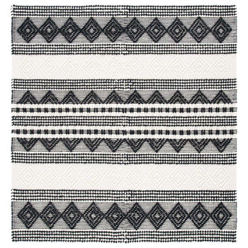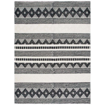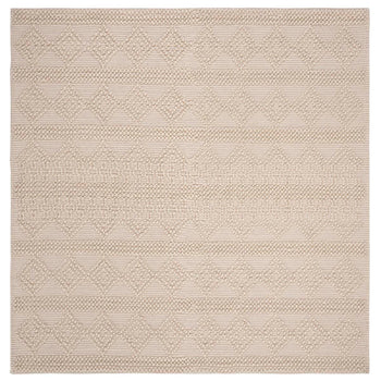 The rug's serene beige and ivory hues bring a sense of calm and neutrality, seamlessly blending with any decor. Its geometric pattern, a harmonious blend of clean lines and raised textures, exudes sophistication and adds an element of visual interest.