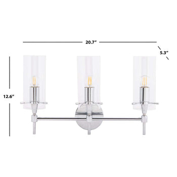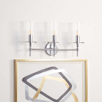 Designed to cast a sensational shimmer in any interior, this Norala Vanity Sconce is at once modern and classic. Norala's three glass shades and industrial inspired bulb are highlighted by a sleek chrome frame, making it the Decor smart choice above a mirror in both the boudoir and bathroom.