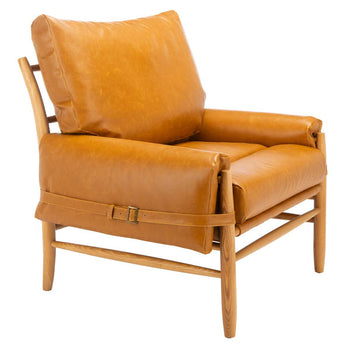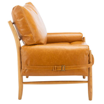 Curl up with a classic in the retro-redux style of the Oslo Mid-Century Armchair. With just a hint of?refined rustic charm in its caramel vegan leather and natural oak spindle leg frame, Oslo will be the most coveted seat in the house.