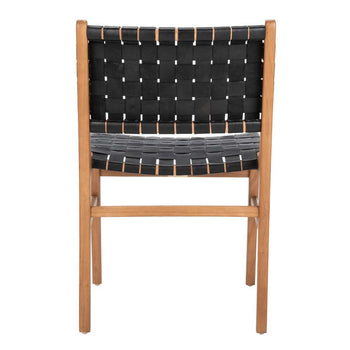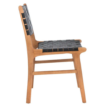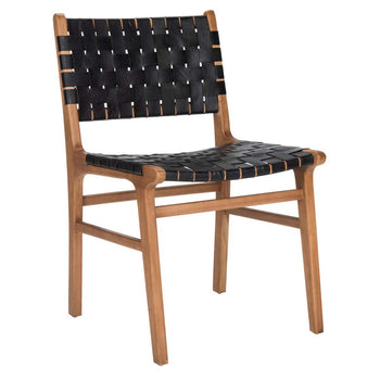 Bring trendsetting style to the table with this Taika Dining Chair. Ideal for elevating the aesthetic of any contemporary decor, Taika's woven black leather seat and back are absolutely luxurious and perfectly complement its natural sungkai wood frame. Sold in sets of two.