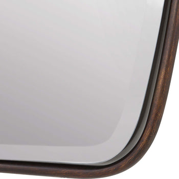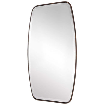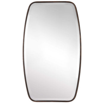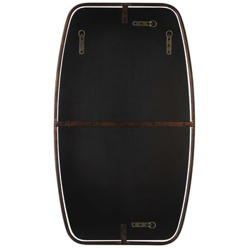 This Shaped Mirror Frame Is Forged From Rounded Metal Finished In A Lightly Distressed Dark Bronze, Featuring A Floating Beveled Mirror. May Be Hung Horizontal Or Vertical.